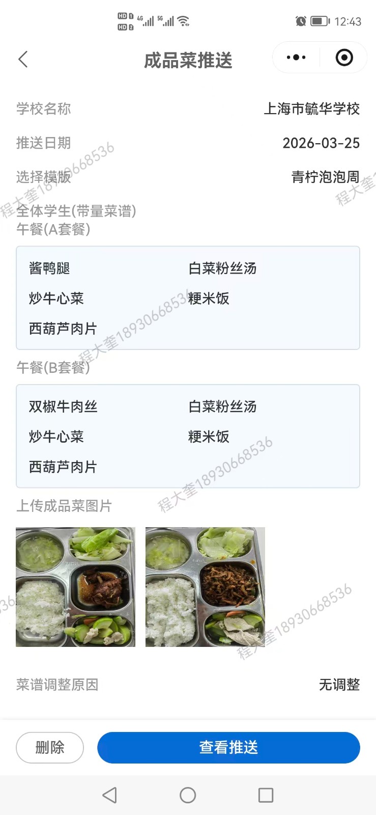 | 星期三 3/25 | 酱鸭腿B | 大荤480 | 小学:鸭腿130.0g;中学:鸭腿140.0g |