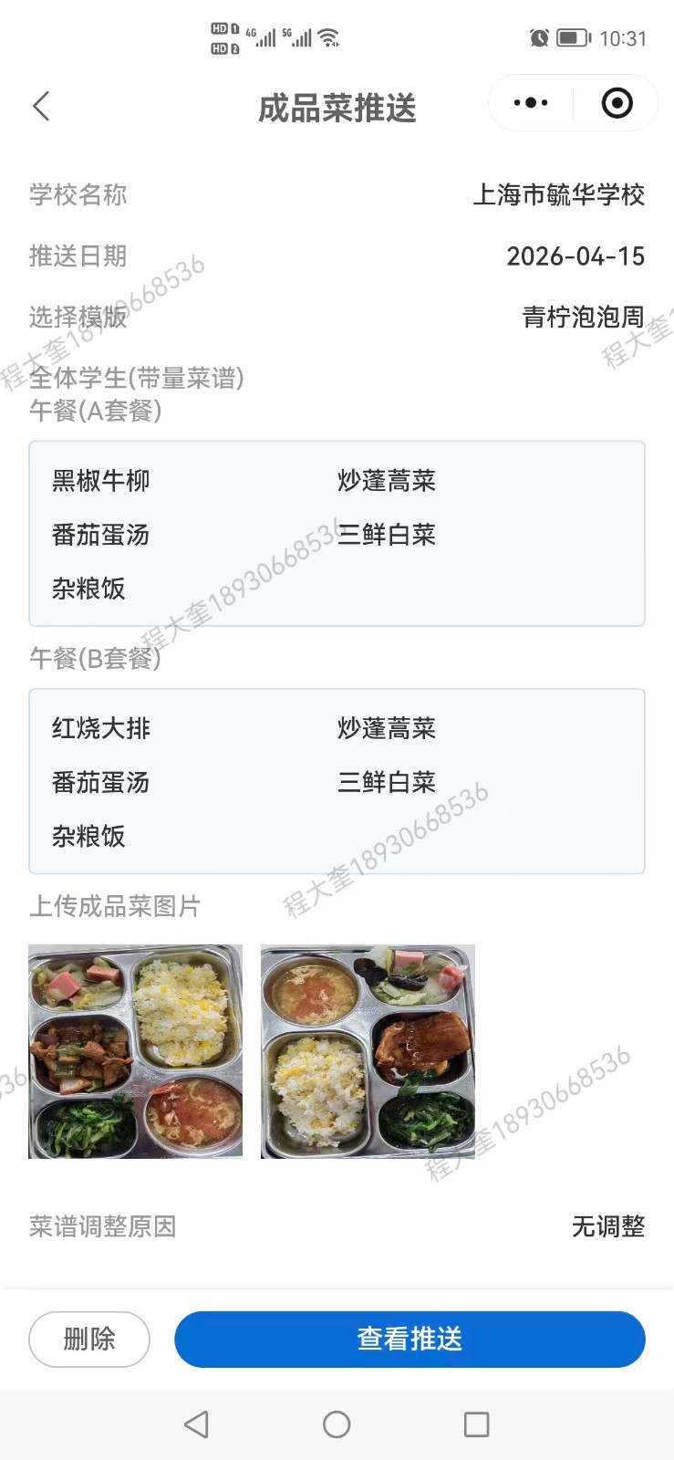 | 星期五 4/17 | 茄汁鸡片A | 大荤480 | 小学:彩椒10.0g光菠萝20.0g鸡胸肉110.0g;中学:彩椒10.0g光菠萝30.0g鸡胸肉120.0g |