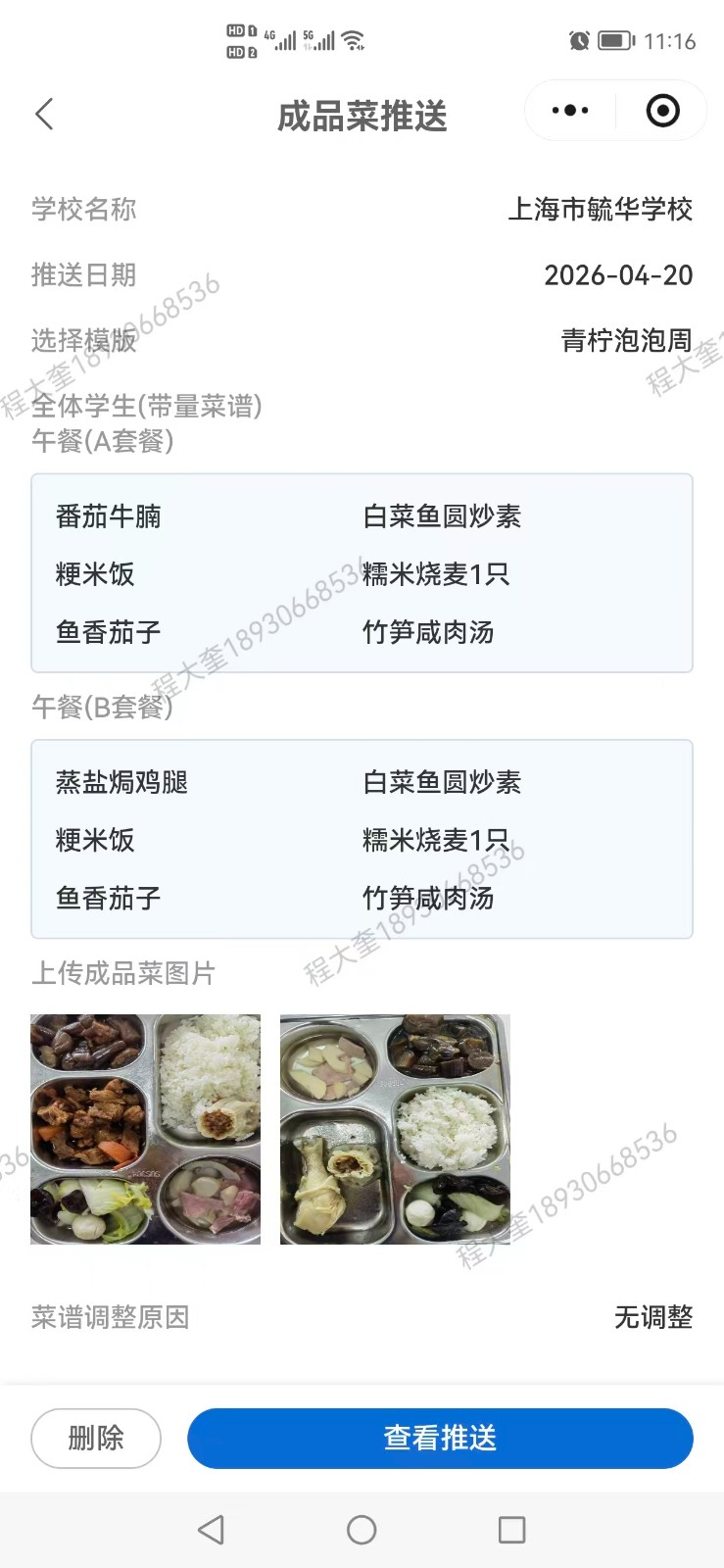 | 星期五 4/24 | 酱鸭腿B | 大荤480 | 小学:鸭腿140.0g;中学:鸭腿150.0g |